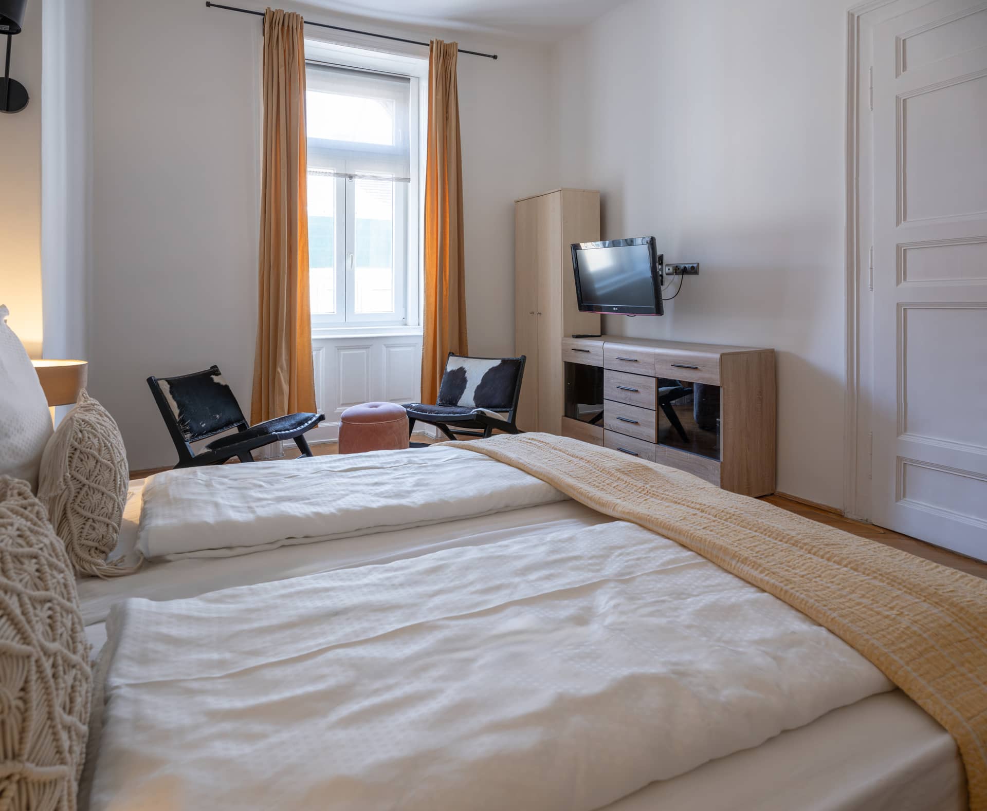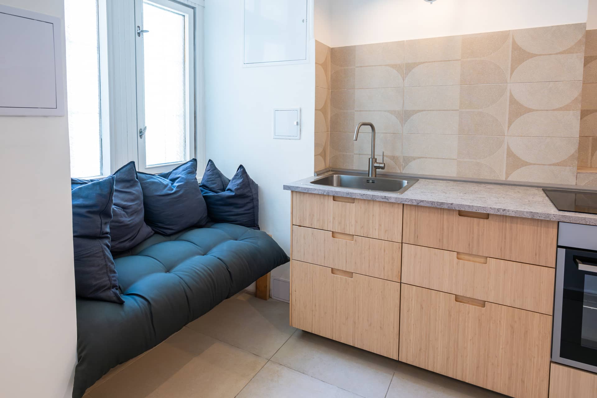 • Egy nagyobb egybenyitott nappali-háló tér, ahol egy további ágy és egy kihúzható kanapé biztosít kényelmes alvóhelyet akár 4 fő részére